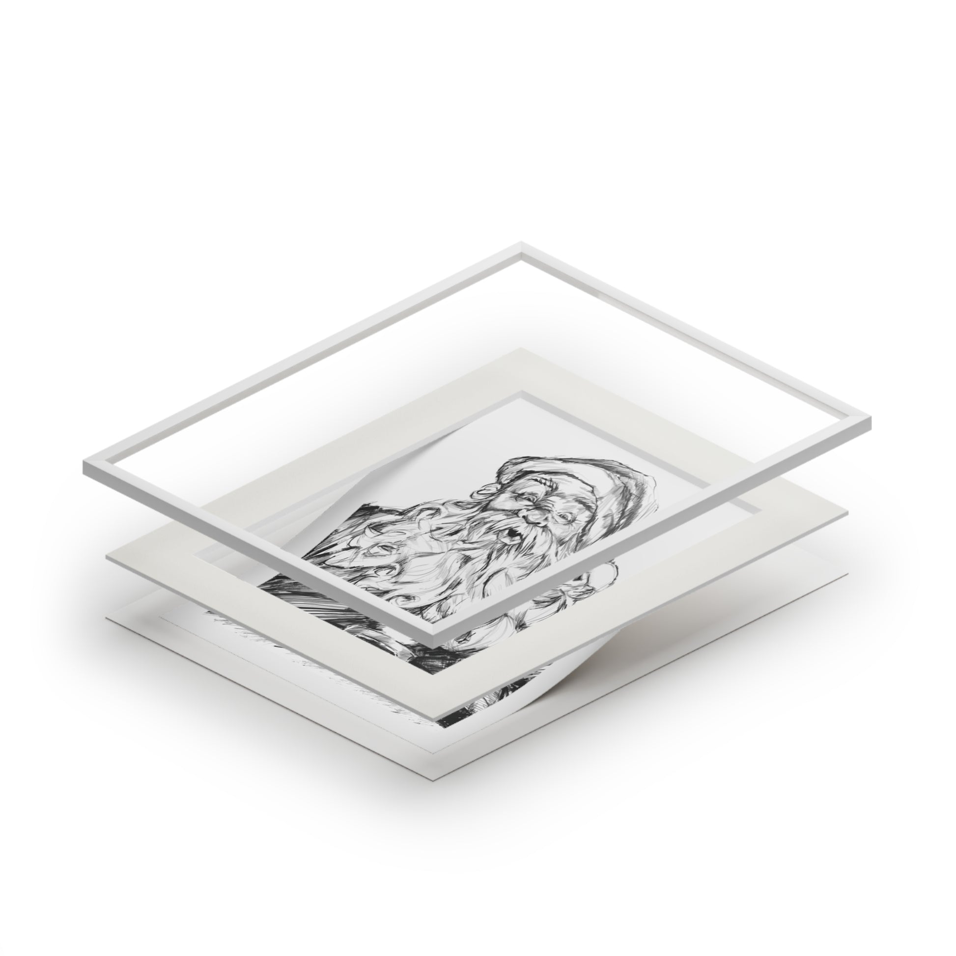 175gsm fine-art paper prints. Equipped with a thick, 2mm (0.07") window-cut cardboard (passpartout) frame that comes in a natural white color, these prints can be hung as-is or inserted in a protective frame of your choice. Available in two sizes: 11" × 14" or 16" × 20".