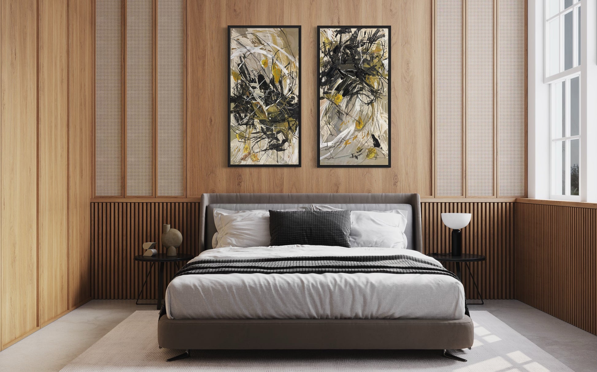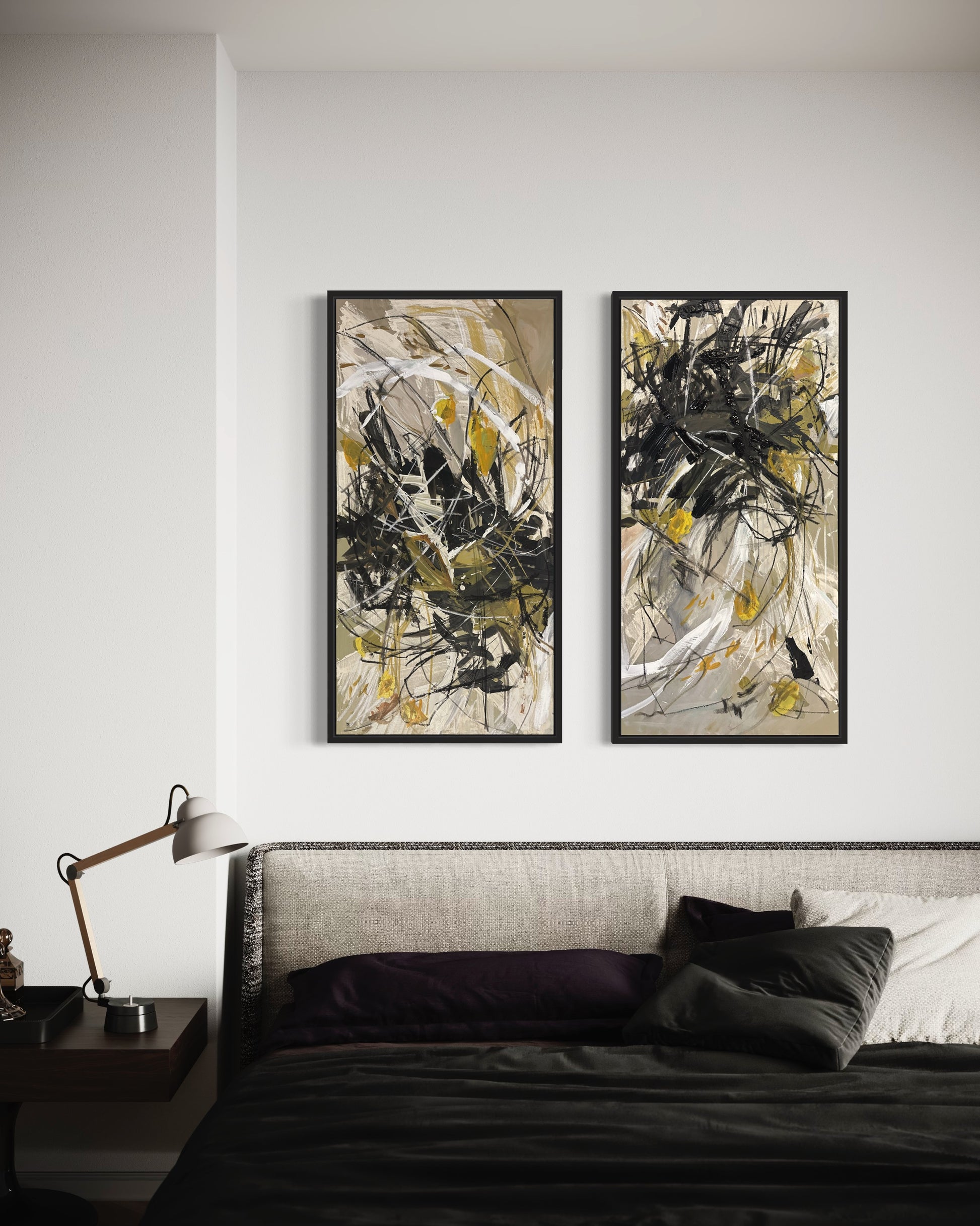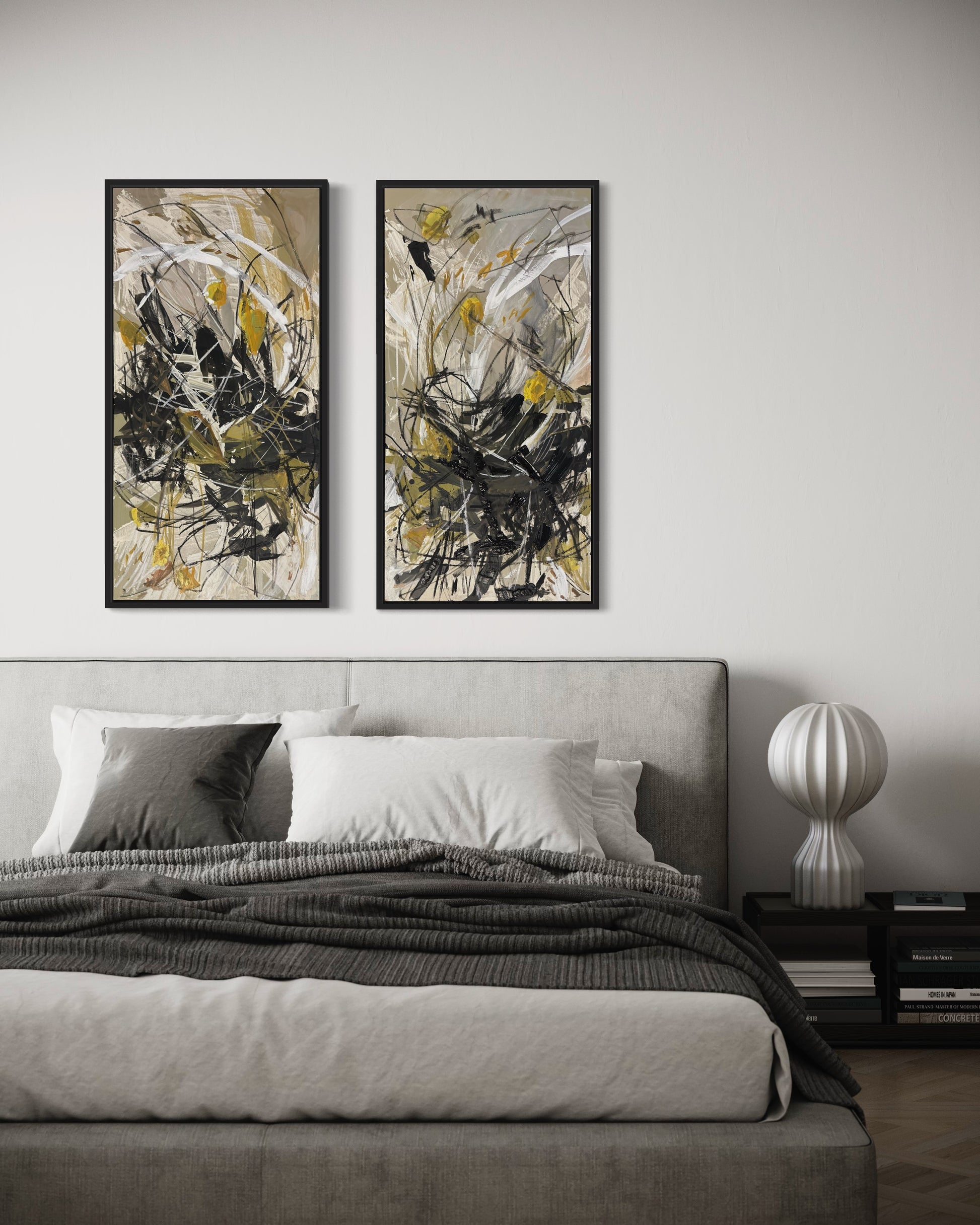 Pair 24x48” Mixed Media on Canvas. Black Floater Frame