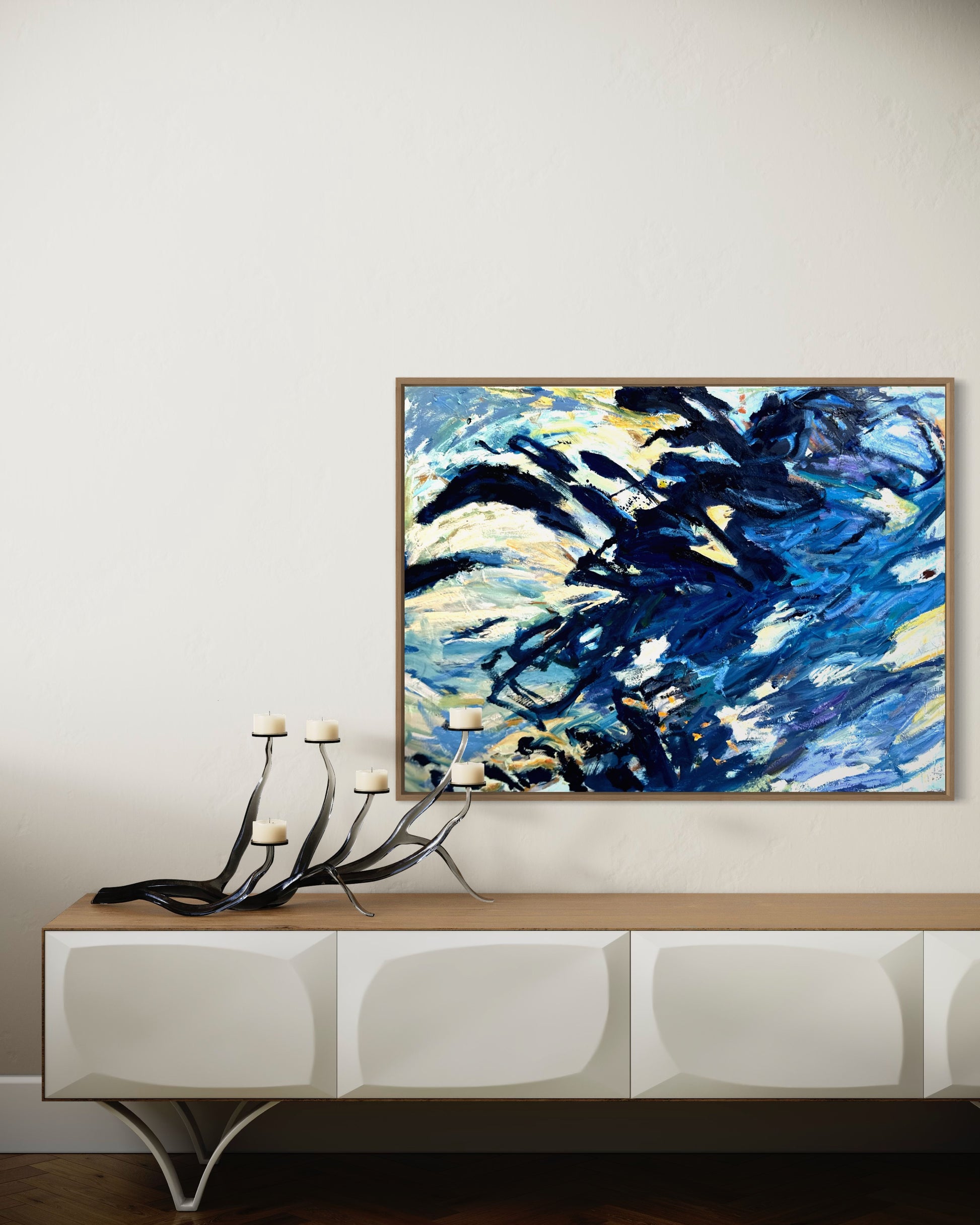 30x40” Oil on Canvas , Natural Wood Frame.