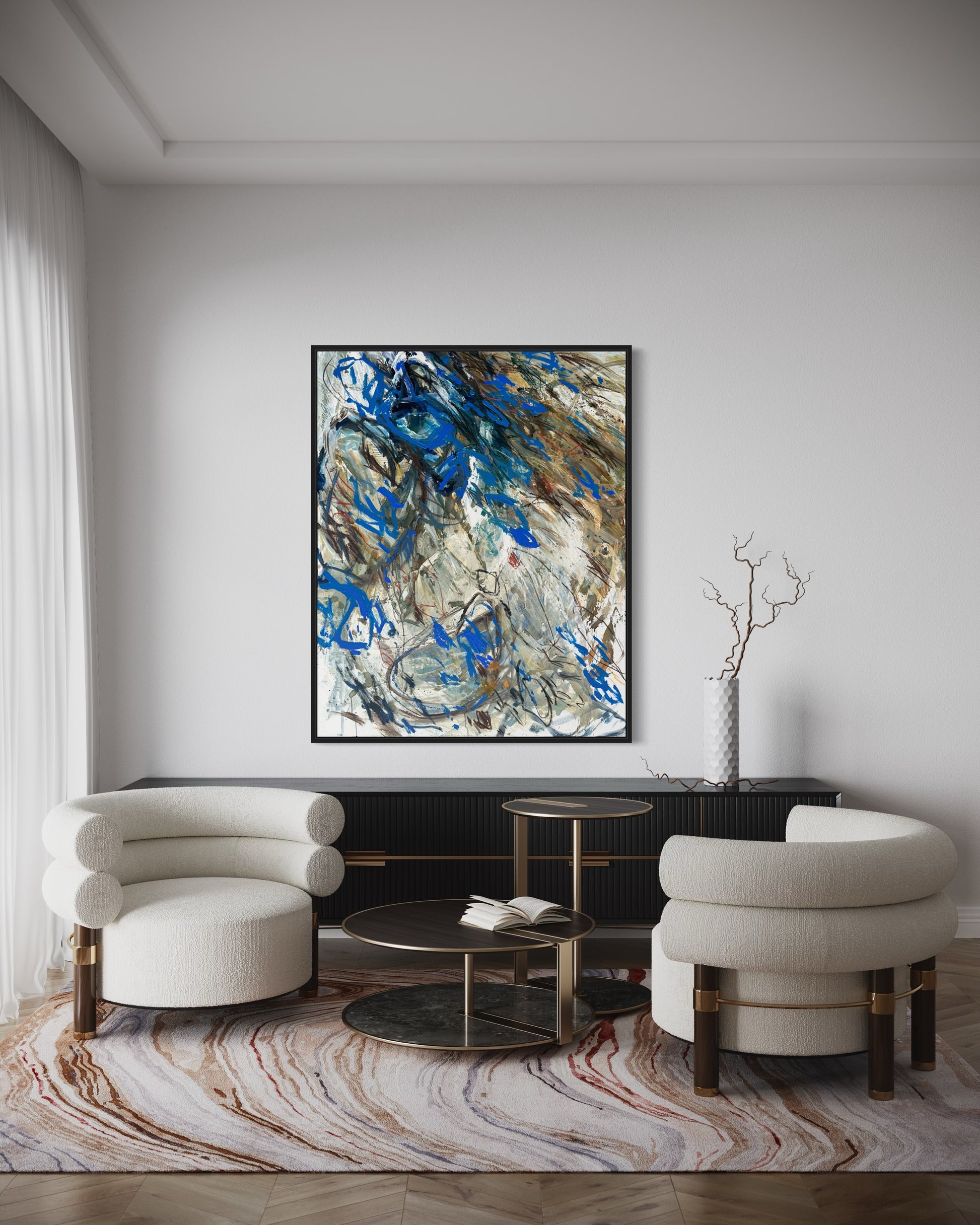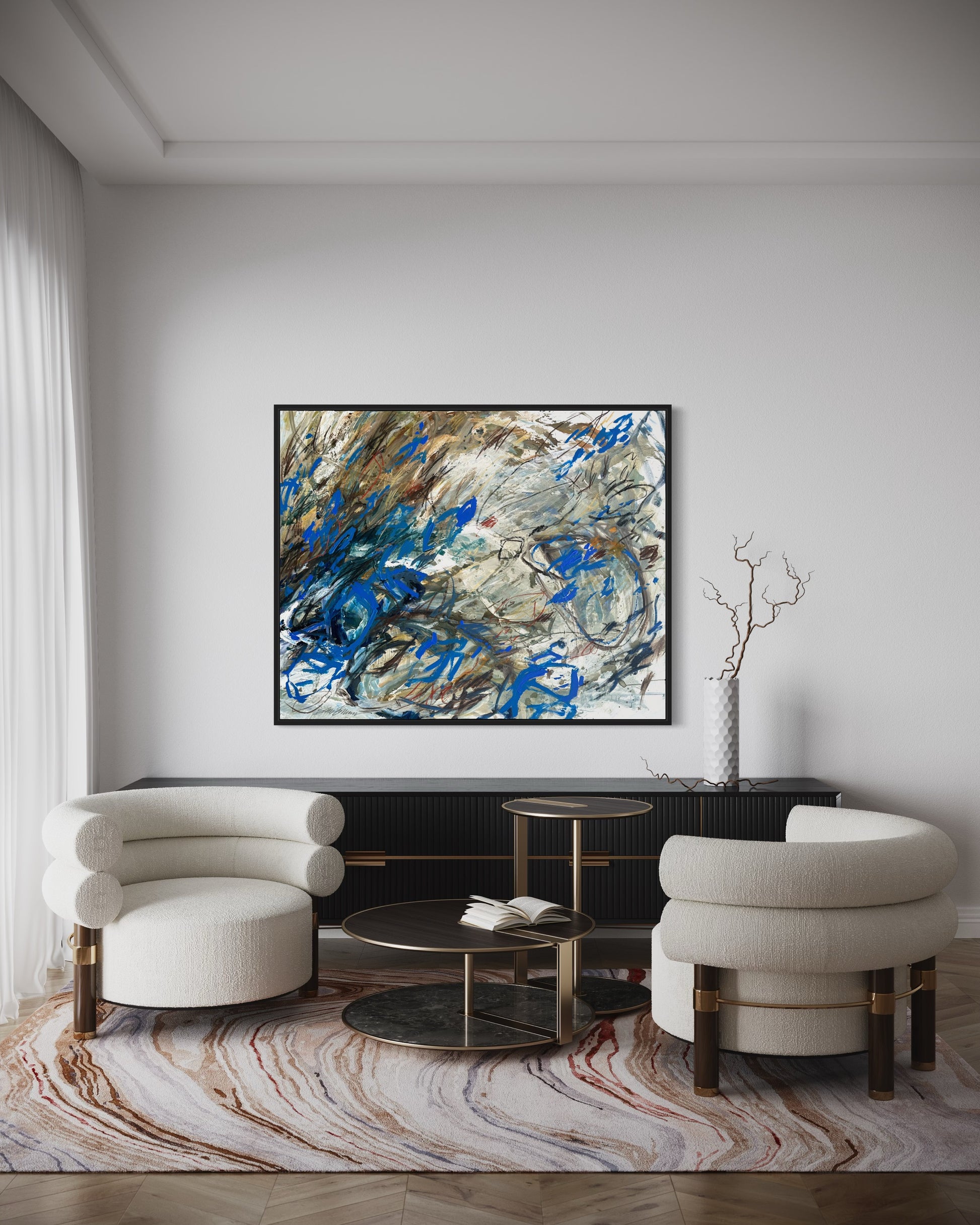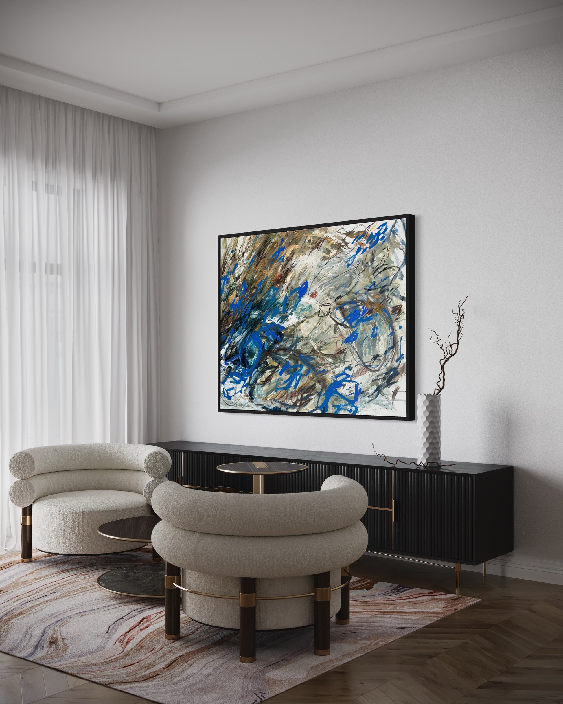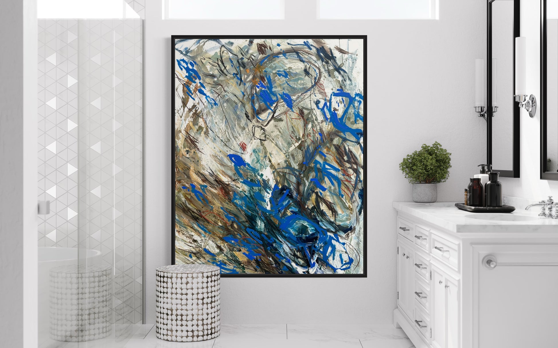48x60 Mixed Media on Canvas. Black Floater Frame