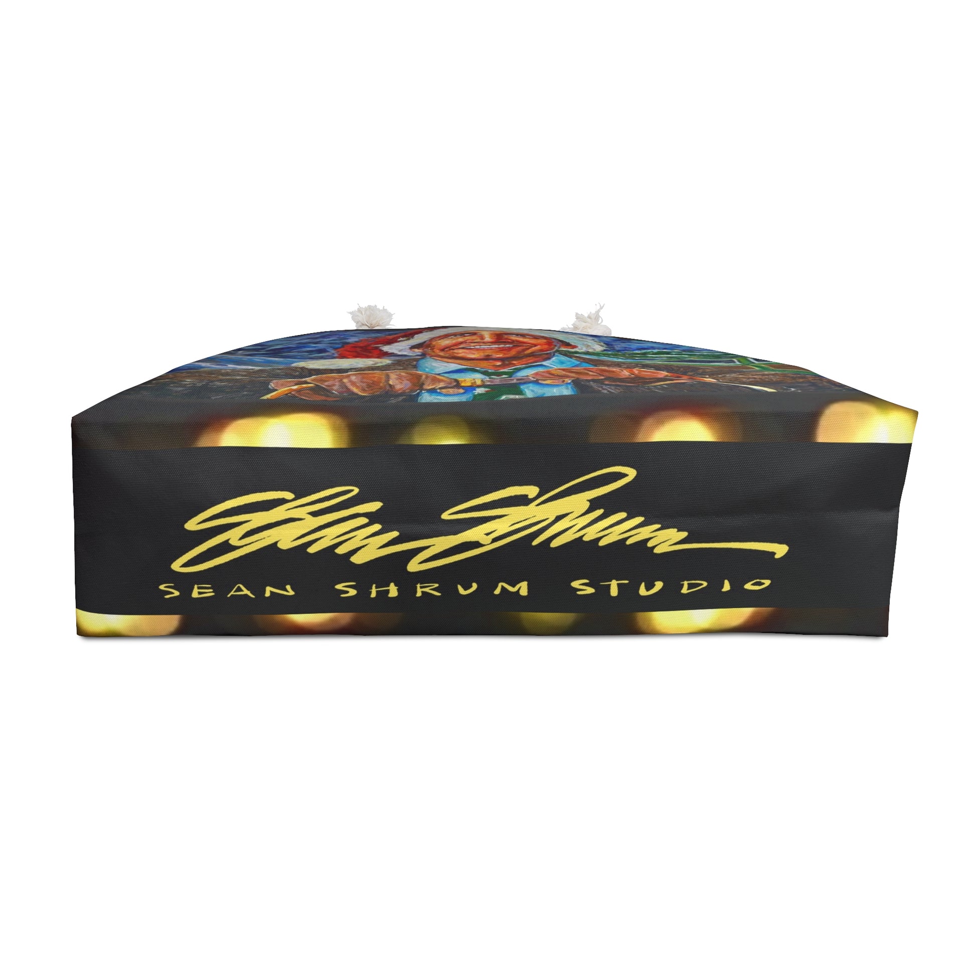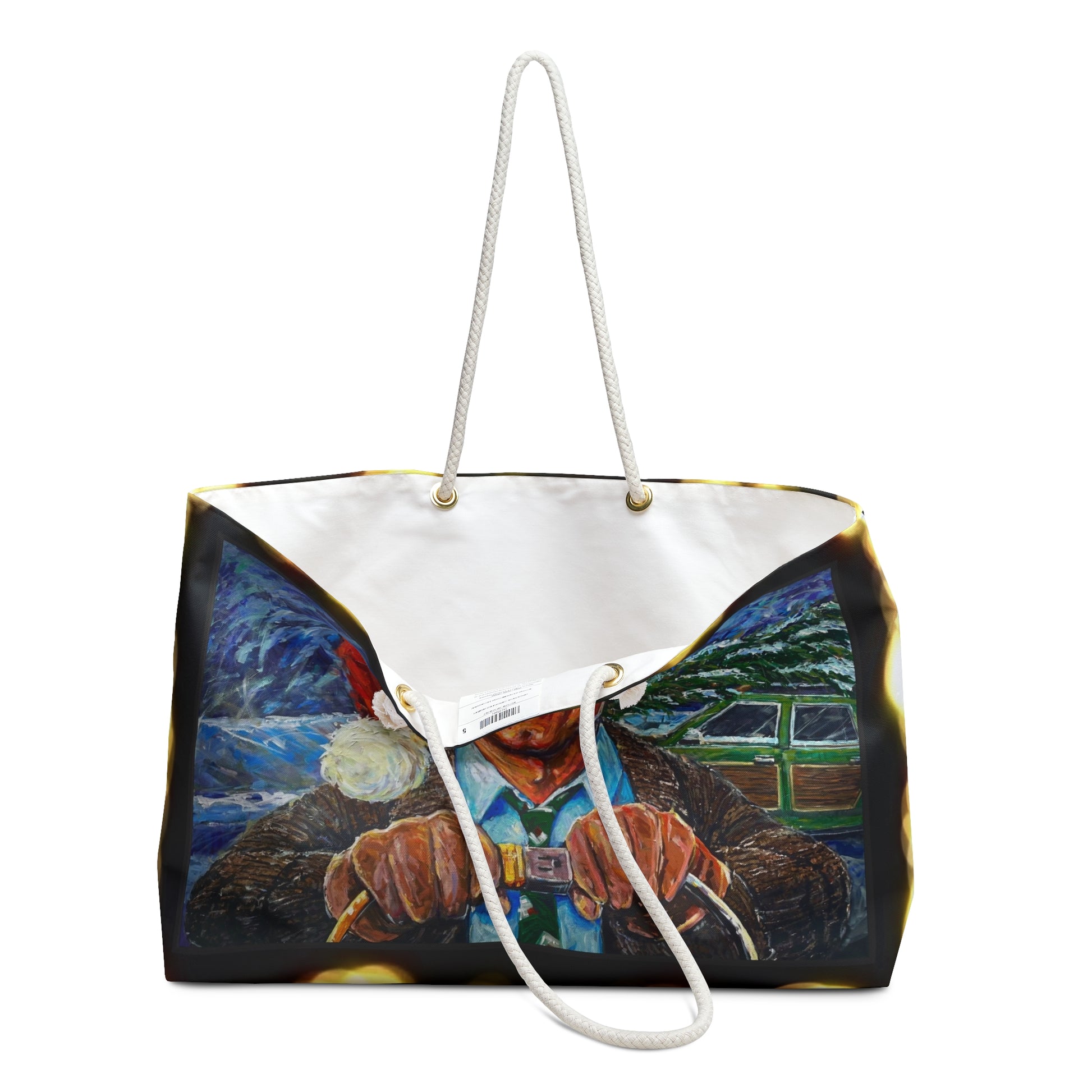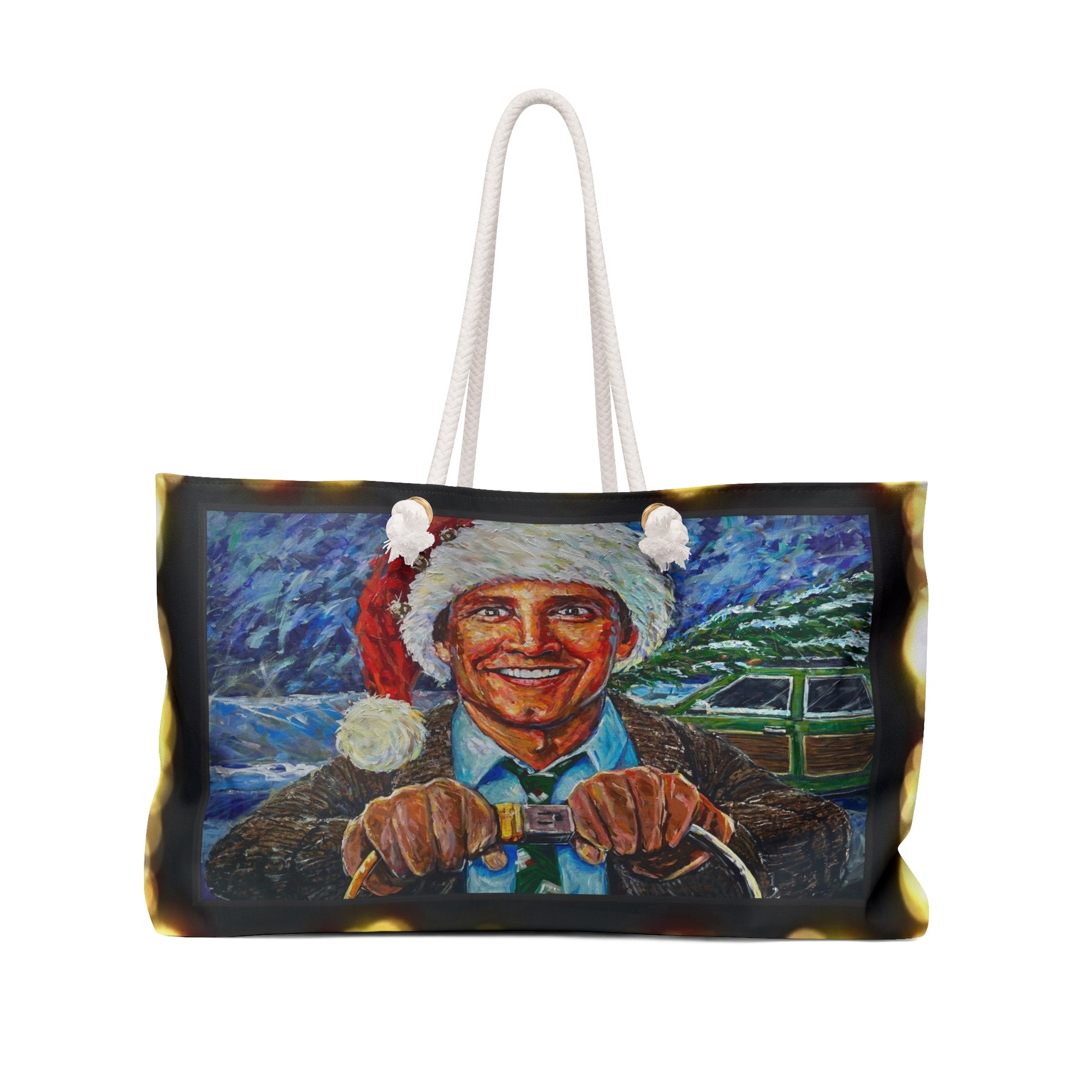 Our oversized Weekender Tote is perfect for shopping or traveling during the holiday season . The wide-mouthed, durable bag holds a generous amount of personal items and is easily held by its thick rope handles.